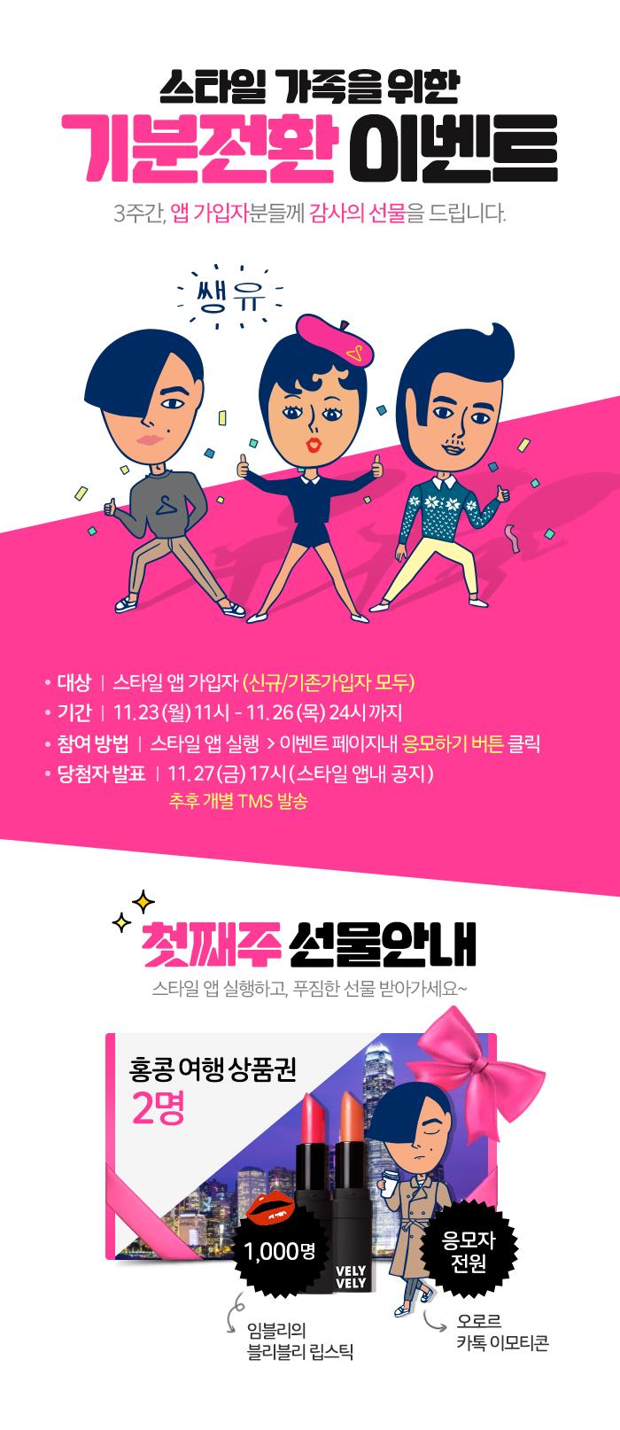 카카오스타일 기존 이용자는 물론, 신규 가입자, 카카오스타일 이용자라면 누구나 참여할 수 있으며, 이모티콘은 첫 응모 시 '카카오스타일 플러스친구'를 통해 발송된다.