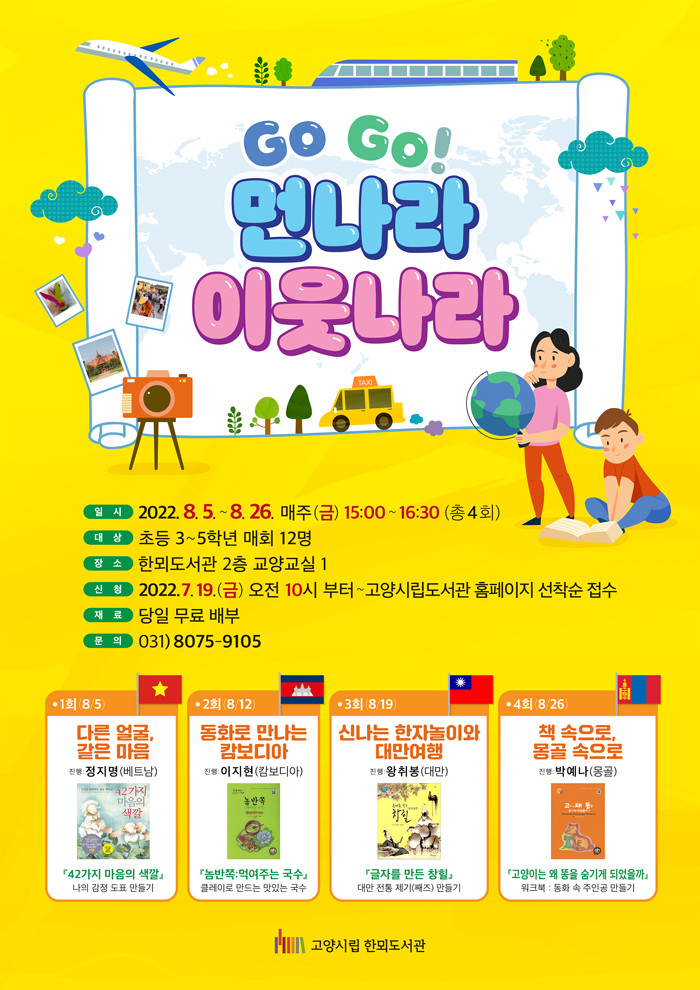 [부자동네타임즈 김인수기자] 고양특례시(시장 이동환) 한뫼도서관이 8월 5일부터 26일까지 다문화 이해교육 Go Go! 먼나라 이웃나라을 운영한다.