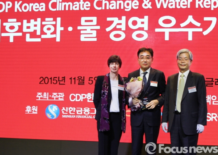 | △ 한국타이어가 2년 연속 CDP 기후변화 우수기업에 선정돼 ‘탄소경영 특별상’을 수상한 후 관계자들이 기념사진을 촬영하고 있다.<사진제공=포커스뉴스> |
