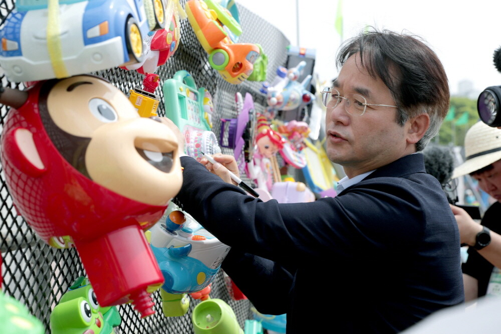 이동환 고양특례시장은 공공예술프로젝트 현장을 찾아 “올해 꽃박람회에서 일산호수공원에 최정화 작가의 ‘숨쉬는 꽃’을 전시하고 최정화 작가와 함께 지속가능성의 의미를 담은 공공참여예술 ‘태양의 꽃’ 활동을 펼치게 되어 기쁘다.”고 말하며 최정화 작가에게 감사의 인사를 전했다.