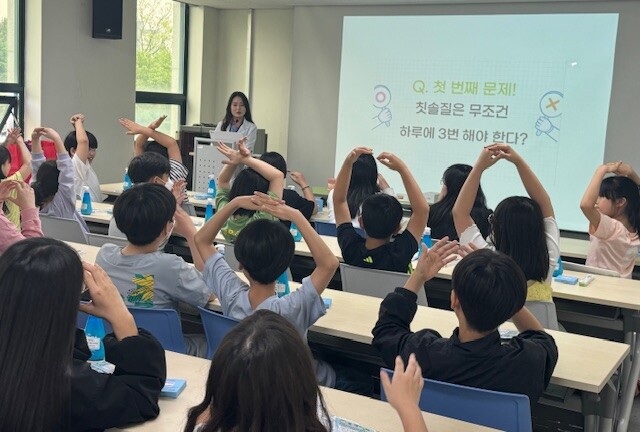 프로그램은 ▲ 인바디 측정 ▲ 저당 교육 ▲ 저당 간식 만들기 실습 ▲ 큐스캔 체험을 통한 올바른 칫솔질 교육 ▲ 흡연예방 및 절주 교육 ▲ 음주고글 착용 등의 교육 내용으로 진행됐다.