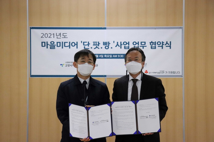[부자동네타임즈 김인수기자] 고양문화재단(대표이사 정재왈)과 사회복지법인 승가원 산하 고양시덕양행신종합사회복지관(관장 김진우)은 지난 4일 고양시덕양행신종합사회복지관에서 지역 공동체회복을 위한 마을미디어 ‘팟캐스트’사업을 위한 업무협약을 체결했다.