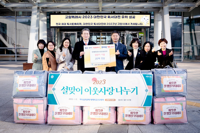 [부자동네타임즈 김인수기자] 고양특례시 일산서구는 지난 12일 하나님의 교회 세계복음선교협회(총회장 김주철 목사)로부터 겨울용 이불 20채(106만원 상당)를 전달받았다고 밝혔다.