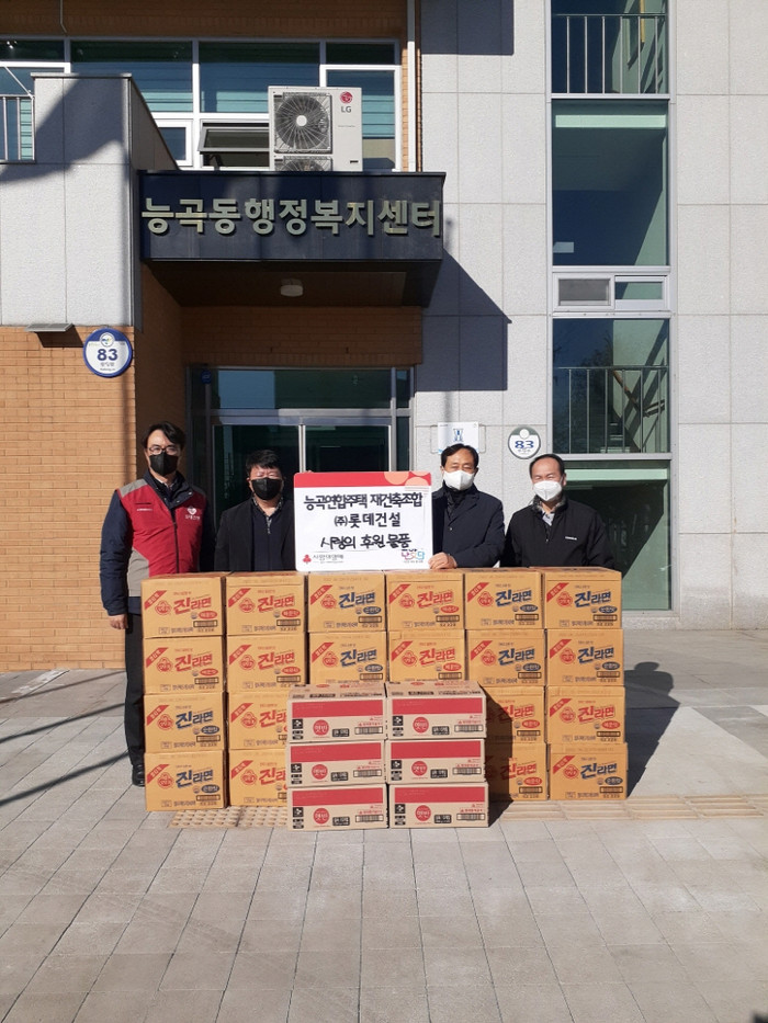 신재홍 능곡동장은 “우리 동을 위해 나눔을 해주신 능곡연합주택 재건축조합원분들과 롯데건설에 깊이 감사드린다. 후원해주신 물품은 조합원님들의 마음과 함께 각 경로당에 잘 전달하겠다”고 답했다.