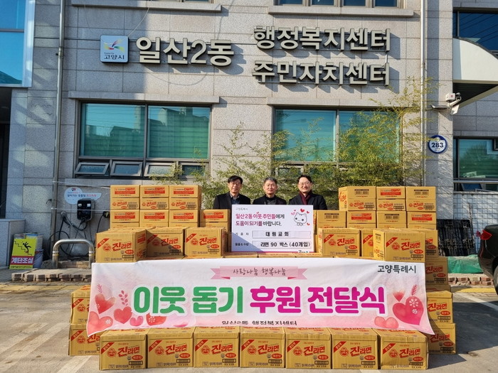 [부자동네타임즈 김인수기자] 고양특례시 일산2동 행정복지센터는 지난 12일 대림교회(탄현동 소재)로부터 라면 90박스(40개입)를 전달받았다고 밝혔다.