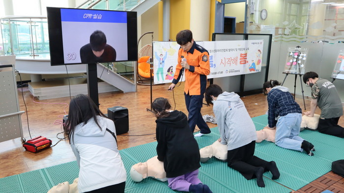 [사진설명] 청소년동아리연합회의 응급 처치 실습.