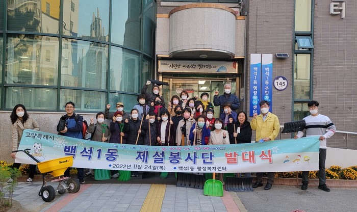 [부자동네타임즈 김인수기자] 고양특례시 일산동구 백석1동 행정복지센터(동장 한철희)에서는 11월 24일(목) 통장 협의회원 및 직능단체로 구성된 제설 봉사단 발대식을 개최했다.