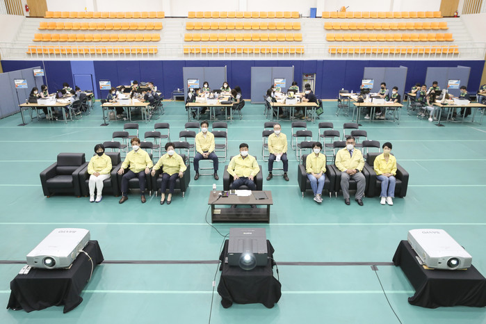 [부자동네타임즈 김인수기자] 고양시의회(의장 김영식)는 8월 24일 고양시청 체육관에 마련된 을지연습장을 방문하여‘2022년 을지연습’훈련 상황을 보고 받고, 훈련 관계자들을 격려했다.