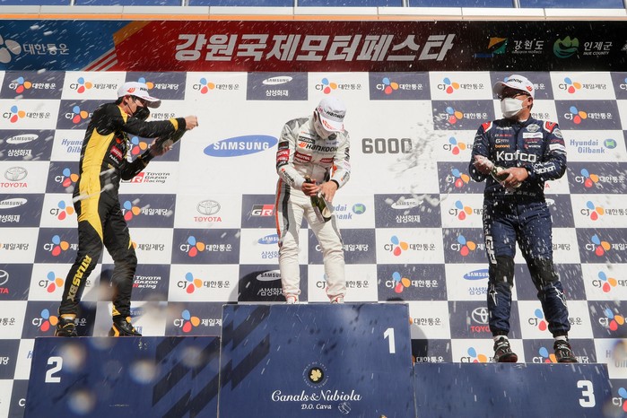 금호 GT2 클래스에서는 김성훈(투케이바디)이 1위, 김현태(위드모터스포츠)와 박규병(울산토바)이 2위와 3위로 포디움에 올랐다.