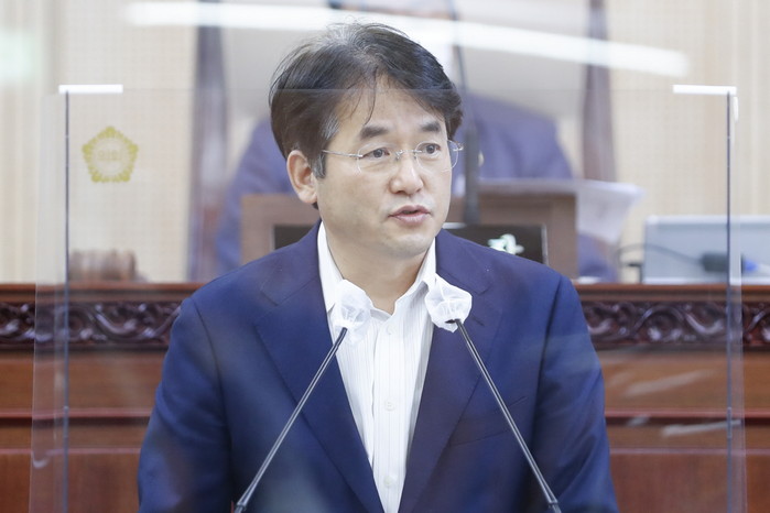 [사진설명] 이동환 고양특례시장이 고양시의회 임시회에서 취임 후 첫 시정연설을 하고 있다.