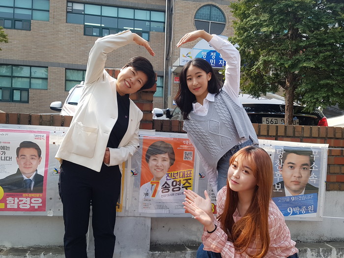 대학생 운동원 이진리 양은 “투표가 이렇게 떨리는 일인지 몰랐다. 태어나서 처음 하는 투표로 대한민국이 조금 더 좋아졌으면 좋겠다”고 소감을 밝혔다.