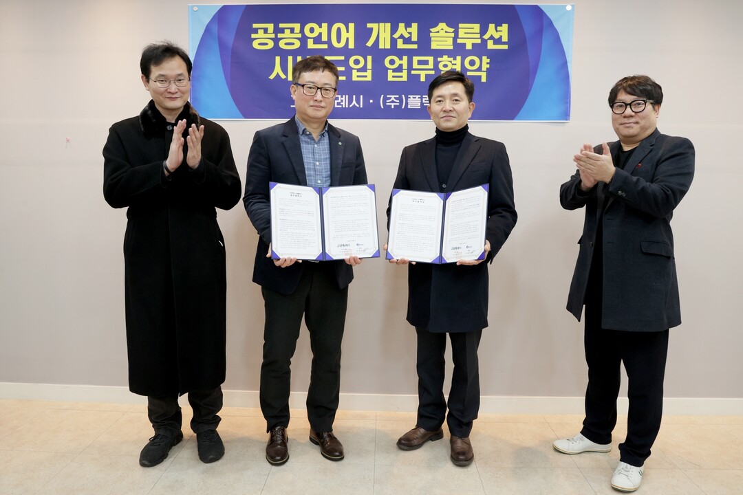 [부자동네타임즈 = 김인수 기자] 어려운 외래어를 쉬운 우리말로 순화하기 위해 공공언어 개선 시범사업을 시작한다. 고양시는 지난 26일 고양시청 대회의실에서 ㈜플렉시스(대표이사 박대희)와 업무 협약을 맺었다.