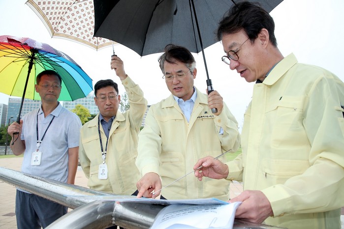 이어 이 시장은 일산호수공원을 찾아 방류 관리계획에 대한 안내를 듣고 사전 방류 현황을 점검했다. 일산호수공원은 지난 7일부터 사전방류를 실시해 집중호우 시 약 10만톤의 물을 저장할 수 있도록 대비하고 있다.