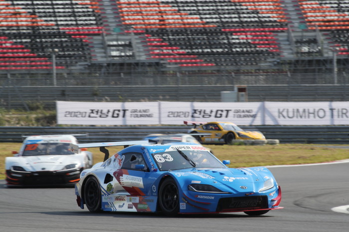 [사진설명] 전남 영암 코리아 인터내셔널 서킷에서 2020 전남GT 슈퍼 6000 클래스 차량들이 질주하고 있다.