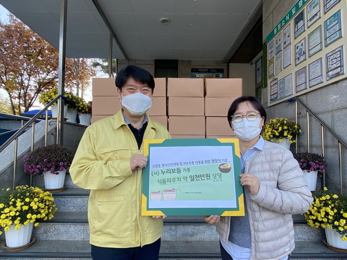 [부자동네타임즈 김인수기자] 고양시 덕양구 고양동행정복지센터(동장 김명섭)는 코로나19로 어려움을 겪는 이웃들을 위해 사단법인 누리보듬(대표 유미정)이 약 1,000만원 상당의 식료품 파우치(즉석 삼계탕)를 기부했다고 밝혔다.
