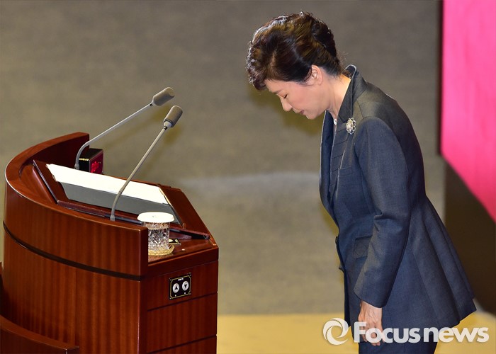 | △ 박근혜 대통령이 지난 10월 27일 오전 서울 여의도 국회 본회의장에서 2016년도 예산안 시정연설을 마친 뒤 인사하고 있다. <사진제공=포커스뉴스> |