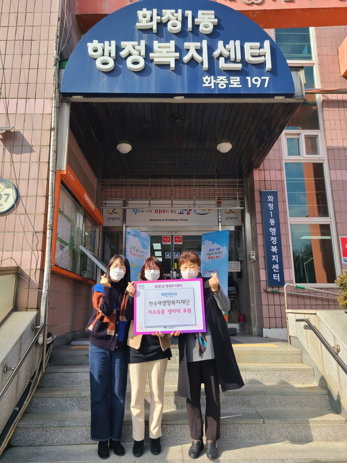 [부자동네타임즈 김인수기자] 고양시 덕양구 화정1동 행정복지센터(동장 황선혜)는 지난 15일, 한국새생명복지재단 일산동구 중소기업위원회(위원장 박진향)에서 저소득층을 위한 생리대 4박스(2,560장)를 기부해왔다고 21일 밝혔다.