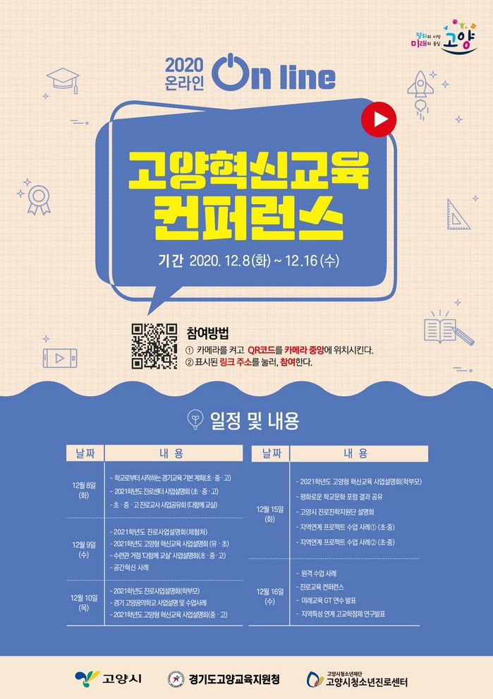 ‘2020 고양 혁신교육 온라인컨퍼런스’의 자세한 일정은 고양 혁신교육 온라인컨퍼런스 사이트에서 확인 가능하다.