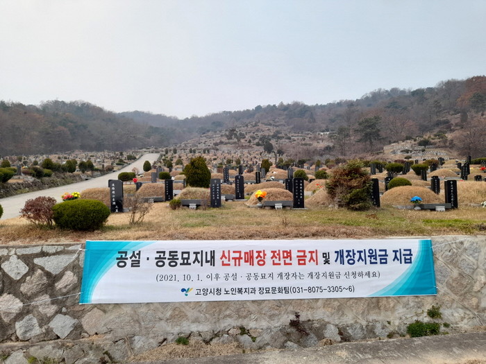 고양시는 공설ㆍ공동묘지 신규매장을 전면 금지하고 개장지원금 지급으로 점진적으로 공동묘지의 분묘 기수를 축소함으로써 장기적으로 공설.공동묘지의 공원화ㆍ현대화를 추진하는 중이다.