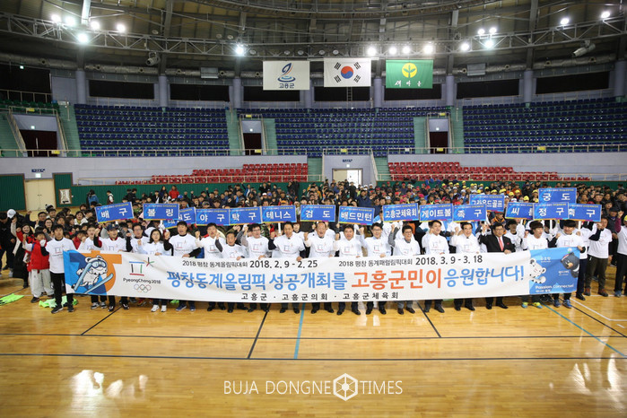 [부자동네타임즈 손권일 기자]고흥군(군수 박병종)은 지난 11월 25일 고흥팔영체육관에서 고흥군 체육인 및 가족 등 2,000여 명이 참석한 가운데「2018 평창동계올림픽 및 패럴림픽대회 성공기원」홍보행사를 개최했다고 밝혔다