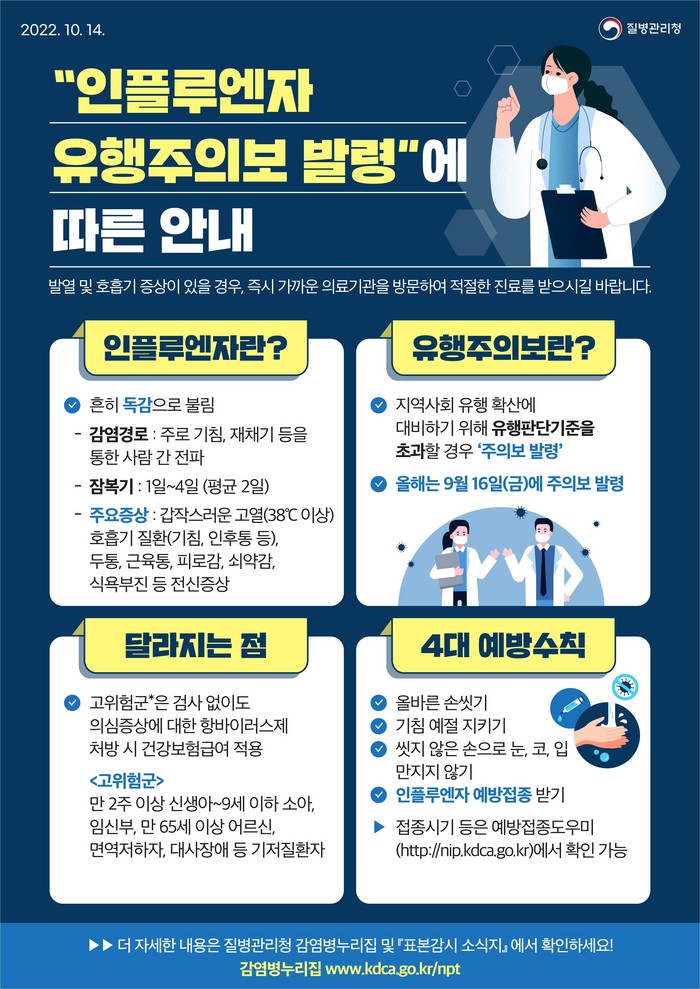 코로나19와 동시 유행하고 있는 이번 독감은 12월 초에 환자 증가 수치가 38%에 이르고 있다. 이에 따라 보건소는 독감 예방 4대 수칙 집중 홍보에 나섰다.