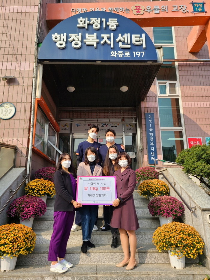 [부자동네타임즈 김인수기자] 고양시 덕양구 화정1동행정복지센터(동장 황선혜)는 "지난 1일, 화정본정형외과의원(대표 백승욱)에서 관내 어려운 이웃들을 위해 쌀(10kg) 100포를 기부했다."고 밝혔다.