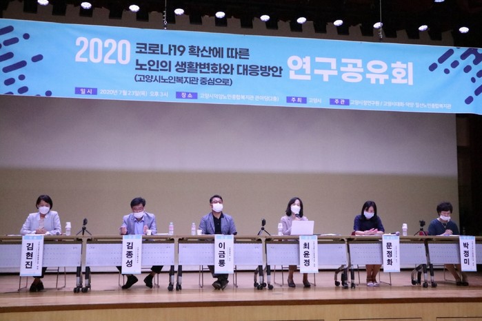 이어서 진행된 토론회는 고양시대화종합노인복지관 최윤정 관장을 좌장으로 고양시 노인복지과 김종성 과장, 상명대학교 가족복지학과 이금룡 교수, 고양시대화노인종합복지관 김현진부장이 참여하여 고양시의 코로나19 대응과 포스트 코로나시대 노인복지관의 방향성에 대한 열띤 토론이 진행되었다.