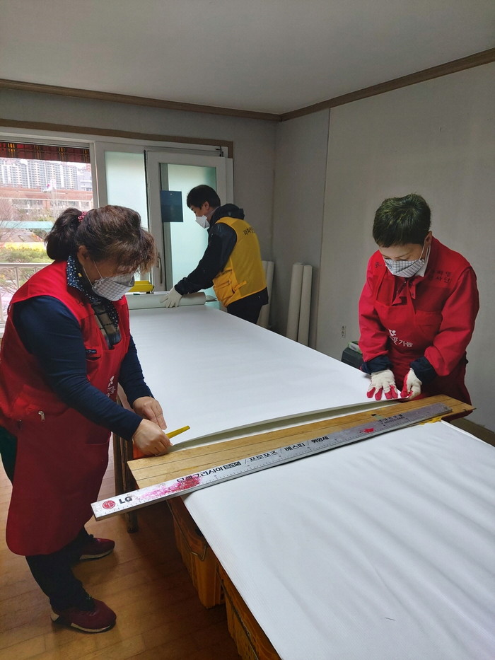 [사진설명] 라파엘 봉사단의 도배 봉사.