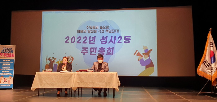 [부자동네타임즈 김인수기자] 고양시 덕양구 성사2동행정복지센터(동장 김윤정)는 지난 29일, 주민지치회(회장 박진수)가 2022년 제1회 성사2동 주민총회를 성공적으로 개최했다고 밝혔다.