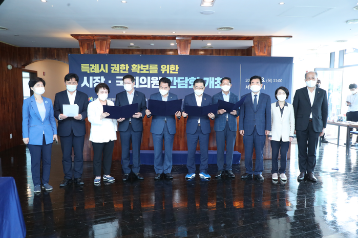 [부자동네타임즈 김인수기자] 특례시 추진 상황과 계획을 공유하고 특례시 권한을 확보하기 위해 특례시 시장‧국회의원 간담회가 이번 7월 8일 개최됐다. 여의도 서울마리나 컨벤션센터에서 열린 이번 간담회에서 고양시와 수원·용인·창원시 등 인구 100만 명 이상 4개 특례시 시장이 한 자리에 모인 것이다.