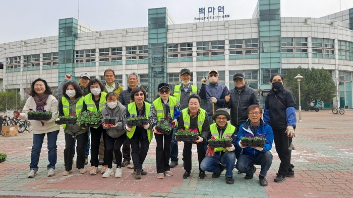 [부자동네타임즈 김인수기자] 고양특례시 마두1동 주민자치회는 지난 4월 13일 백마역 지하보도 입구 주변 화단 등 백마역 일대에 약 1,000여 본의 페튜니아를 식재했다.