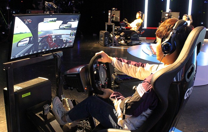 [사진설명] 지난해 슈퍼레이스 esports에 참가한 심레이싱 드라이버가 레이싱기어를 사용해 아세토 코르사를 플레이하고 있다.