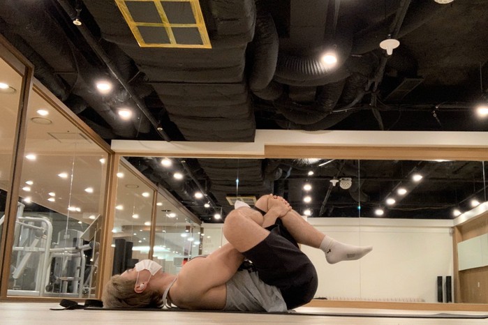 하늘을 보고 누운 자세에서 다 손으로 무릎을 혹은 허벅진 안쪽을 잡아 가슴쪽으로 당겨준다 10~20초 정도 정지 하고 반대쪽 진행. 세트3set. 횟수 한 쪽당 10~20초.