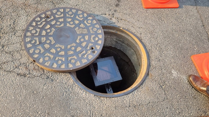 [사진설명] 맨홀에 설치된 모니터링 장치.