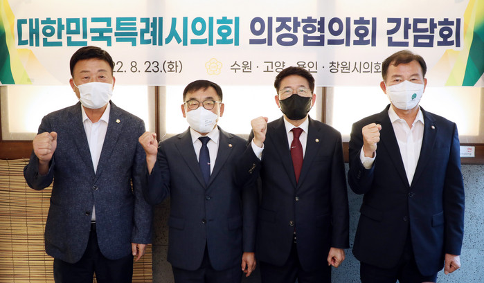 이번 회의는 제8회 동시지방선거 이후 새롭게 출범한 각 특례시의회 의장들의 첫 회의로 김영식 고양시의회 의장, 김기정 수원시의회 의장, 윤원균 용인시의회 의장, 김이근 창원시의회 의장이 참석하였다.