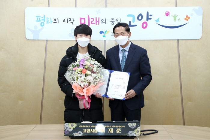 지난 28일 오후 5시 시청 열린회의실에서 진행된 표창장 수여식에서 이재준 고양시장은, 권유호 청년을 “1만 명 넘는 고양시민을 지킨 작은 영웅”이라고 칭하며 “이 표창장은 108만 고양시민이 드리는 상”이라고 격려했다.
