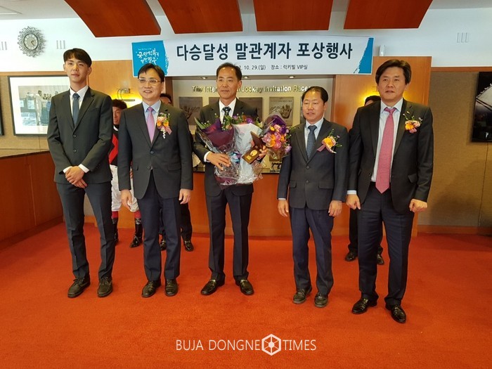[부자동네타임즈 신동현 기자]난 29일(일) 마사회(회장 이양호)가 다승 달성한 말 관계자 포상 행사를 시행했다. 수상 대상자는 조교사 2명이며 달성 승수에 따른 포상금과 기념패를 전달했다.