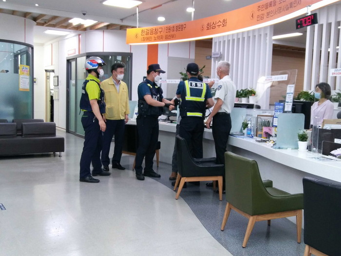 이날 훈련은 민원여권과장을 총괄반장으로 단계별 대응 전담반을 편성해 진행됐으며 종합민원실, 경찰서, 보안업체를 연계한 CCTV 비상벨 작동여부, 매뉴얼에 따른 대응 숙지 여부를 집중 점검했다.