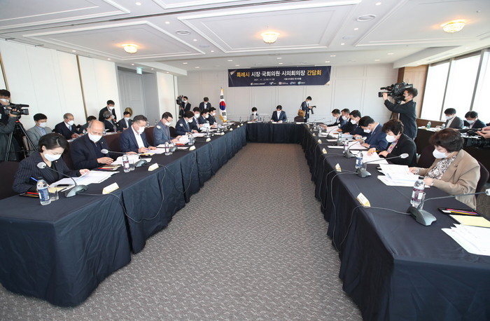 이날 간담회는 내년 1월 13일 특례시 출범이 순항할 수 있도록 지원사격하는 자리로 특례시의 실질적 권한 확보를 위한 대응방안·분권법 개정(안) 등이 논의됐다.
