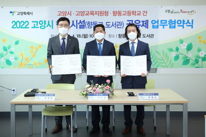 이날 이재준 고양시장, 서동연 고양교육장, 최광보 향동고등학교장이 협약서에 서명했다. 협약기간은 2022년 4월 19일부터 2026년 12월 31일까지 5년간이다.