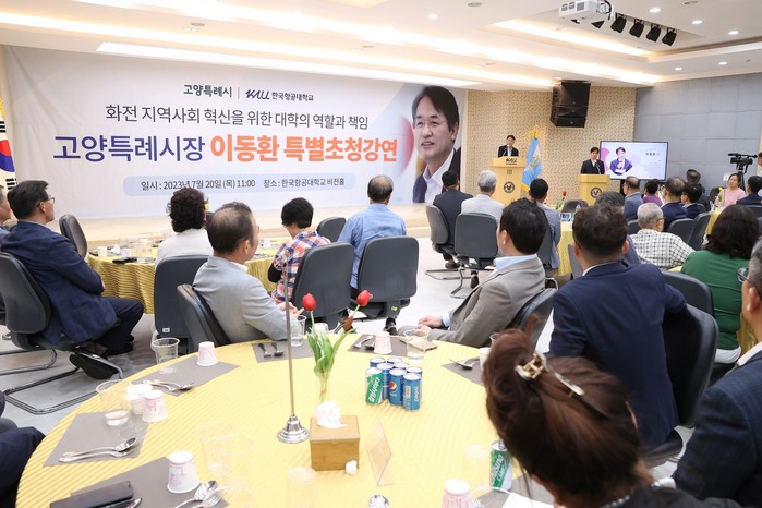 이동환 고양특례시장은 “마을 살리기 프로젝트에 동참한 한국항공대 허희영 총장과 교수진, 학생, 지역주민 여러분께 감사하다. 고양시의 관광문화에 활력을 불어넣는 방법은 고양시를 아끼고 사랑하는 시민에게 있다는 것을 실감했다”며 강연을 시작했다.