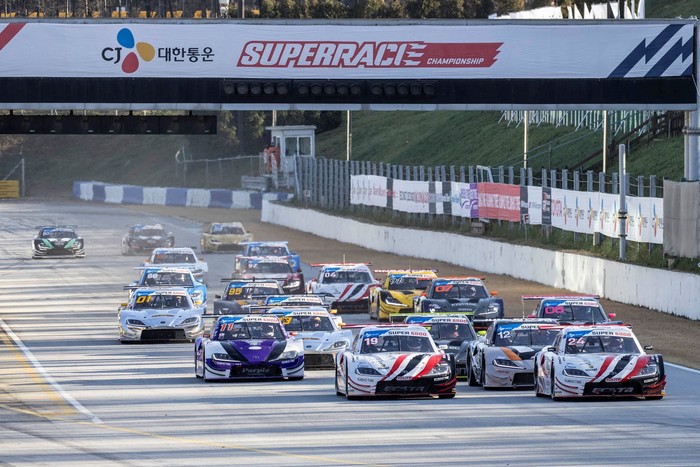 [사진설명] 지난해 에버랜드 스피드웨이에서 열린 CJ대한통운 슈퍼레이스 챔피언십 슈퍼 6000 클래스 결승전에서 차량들이 스타트 하고 있다.