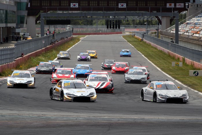 [사진설명] 오피셜 테스트에 참가한 슈퍼 6000 클래스 차량들이 롤링스타트 시뮬레이션을 하고 있다.