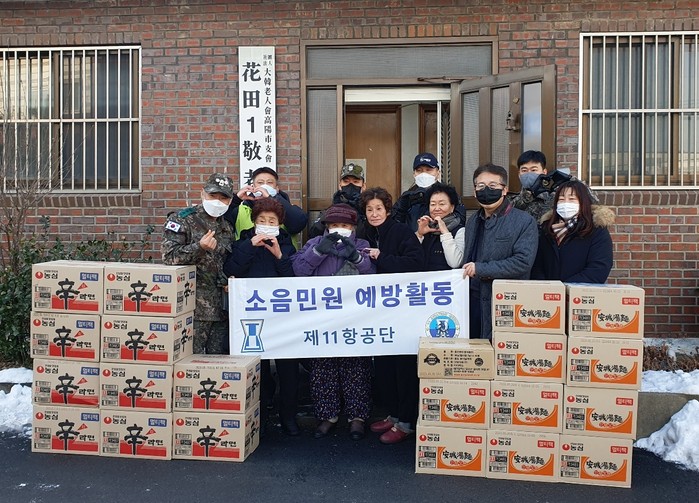 이날 ‘연말연시 따뜻한 나눔 실천’을 위해 화전동 경로당을 방문한 차건호 육군 11항공단 대령은 “군과 함께 해주시는 지역 주민들께 항상 감사드리며, 앞으로도 지역주민의 불편을 최소화 하도록 노력해 국민에게 신뢰받는 육군 11항공단이 되겠다.”라고 밝혔다.