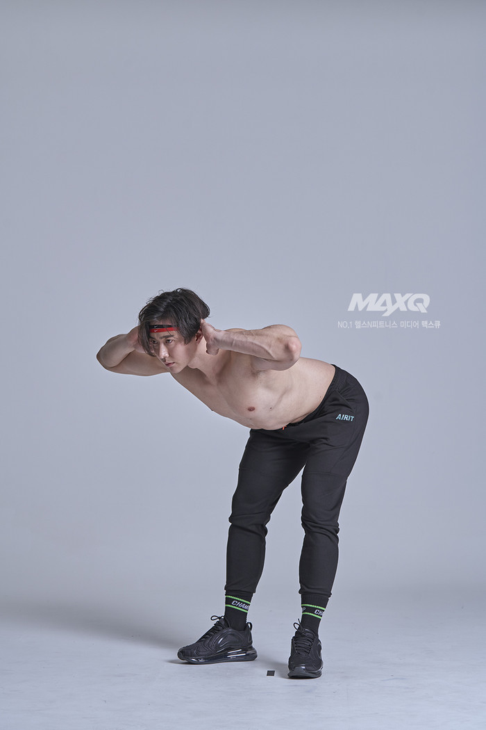 많이들 알고 운동이라고 생각한다. 본운동으로도 많이 사용되지만 나 같은 경우 본운동이 들어가기 전 모빌리티로 가동범위를 확보한다. 발가락을 바깥쪽으로 약간 벌리고 손을 머리 뒤로 올려준다. 아침에 인사 하듯이 숙여주고 고개는 들지 않는다.