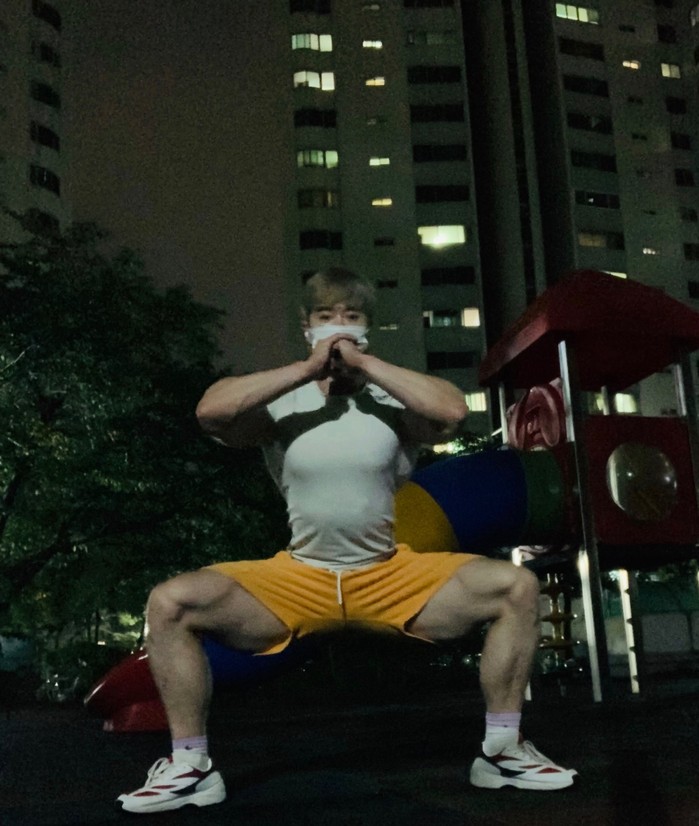 [사진설명] 런지운동 자세를 선보이는 김태양 선수 멕스큐 사진 제공.