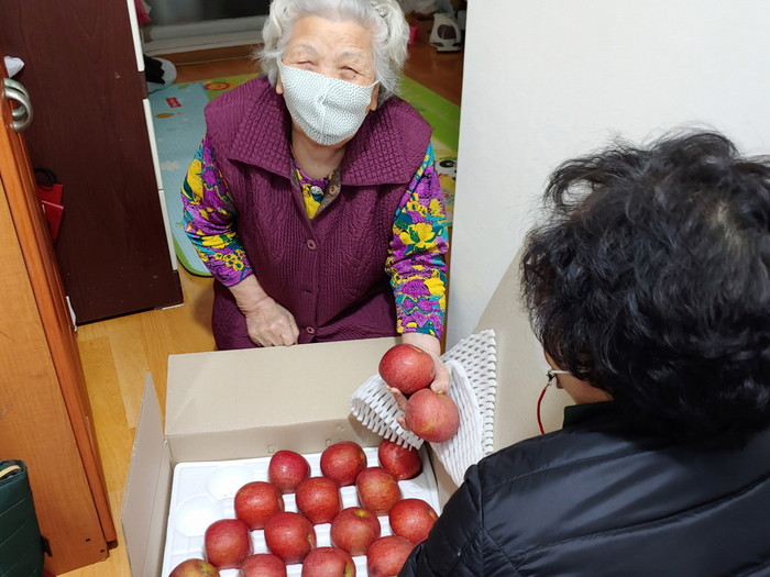 후원받은 사과는 보건소 방문간호사들이 마스크 착용 등 코로나19 방역수칙 철저히 준수하며 독거노인, 기초생활수급자, 장애인 등의 가정에 직접 방문해 전달했다.