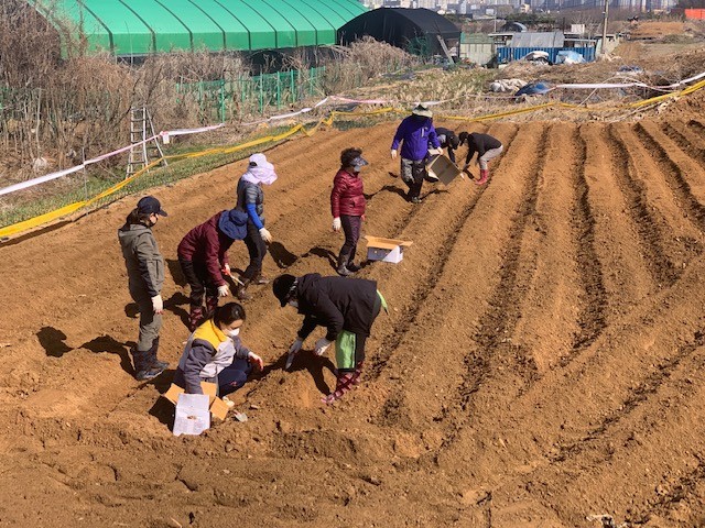 백석1동 주민자치회 위원들과 지역 기업체인 한국동서발전(주)일산발전본부의 직원들 20여명이 아침부터 퇴비를 살포하고 밭을 갈았으며, 3일 전 미리 싹을 틔워 놓은 씨감자를 심었다. 5월에는 고구마심기도 추가 할 예정이며 이를 위해 미리 밭을 갈고 비닐을 씌우는 준비 작업을 이어 나갔다.