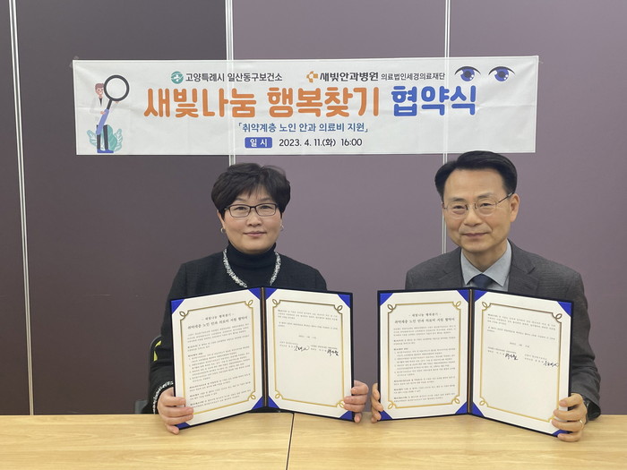 [부자동네타임즈 김인수기자] 고양특례시(시장 이동환) 일산동구보건소는 지난 11일 의료법인 세경의료재단 새빛안과병원과 새빛나눔 행복찾기 업무협약을 체결하였다고 밝혔다.