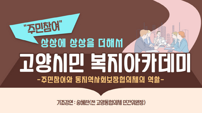 [부자동네타임즈 김인수기자] 고양시 지역사회보장협의체(이하 협의체)는 ‘고양시민 복지아카데미’의 새로운 콘텐츠를 협의체 유튜브에 게시한다고 3일 밝혔다.